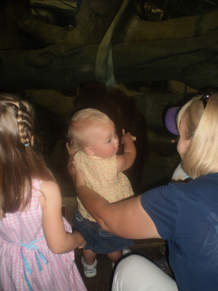 She got up close and personal with this orangutan. Here she is making sure Grandma is seeing this.